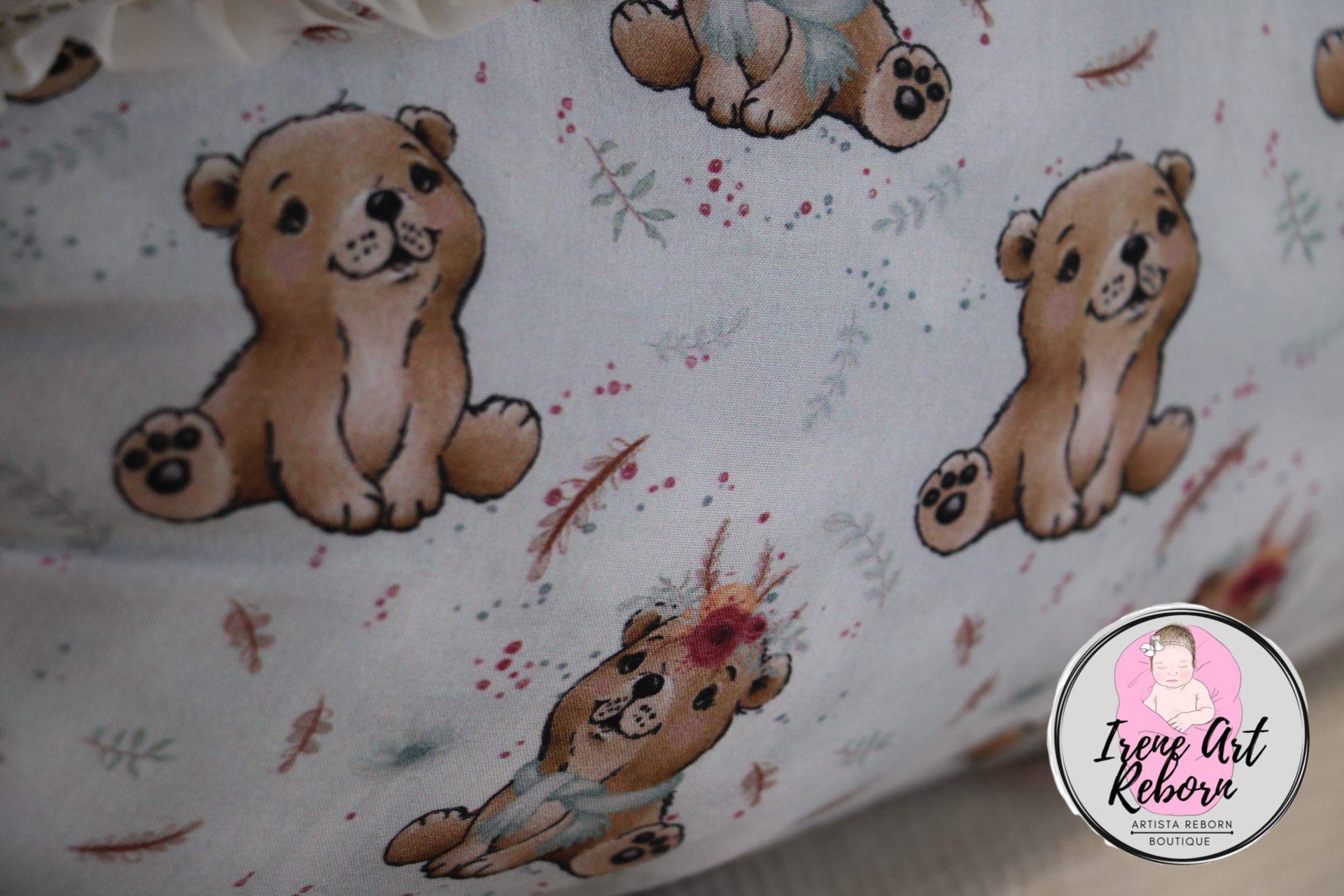 Cojín para reborn Alegres ositos fondo verde mint 1